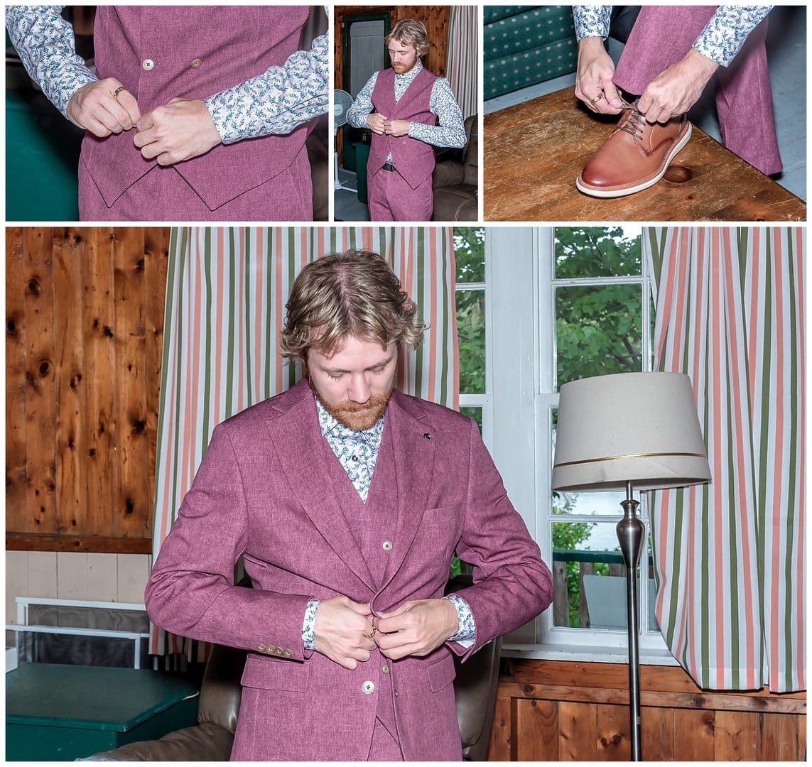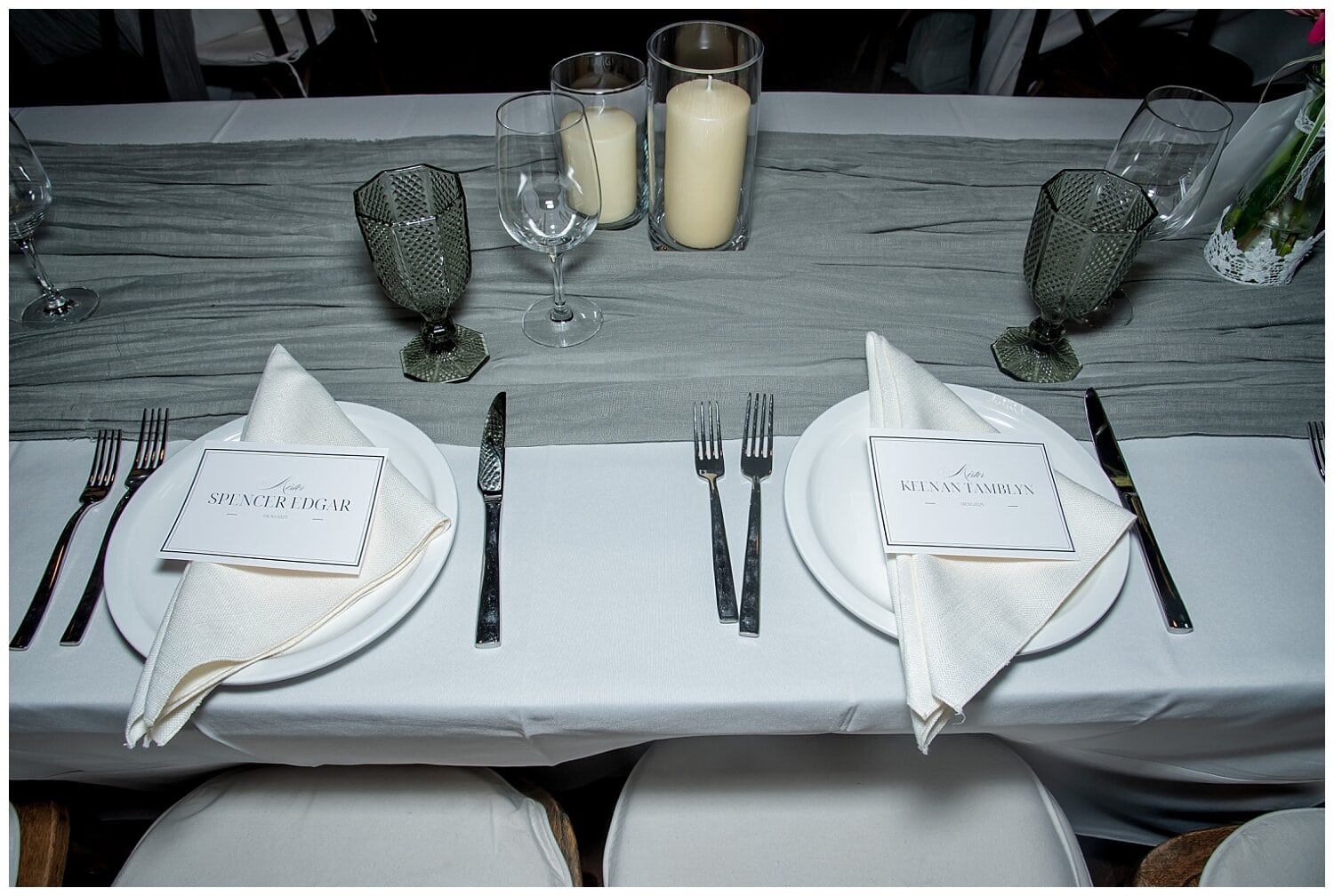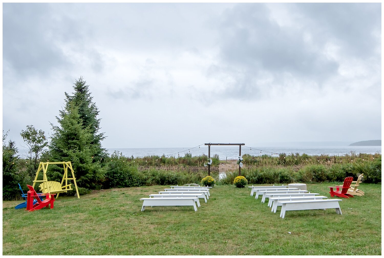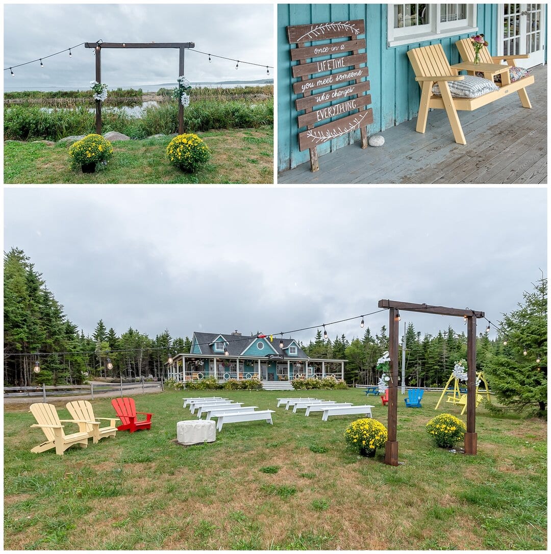 One of the most unique parts of their wedding was their venue choice: Shandon’s, Moonshine Cabin, located at Hubbards Campground and Cottages. What many don’t know is that this stunning ocean-view location is actually a working film set.