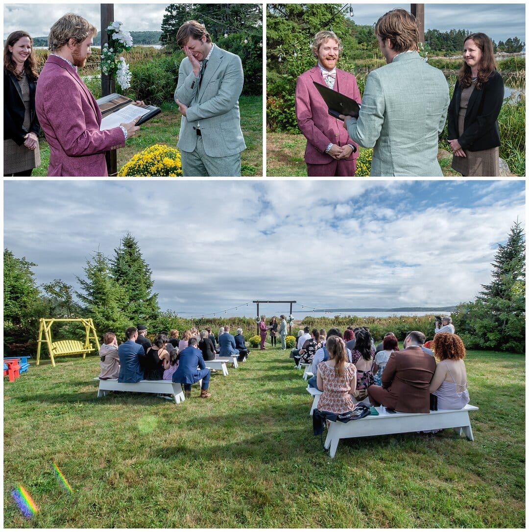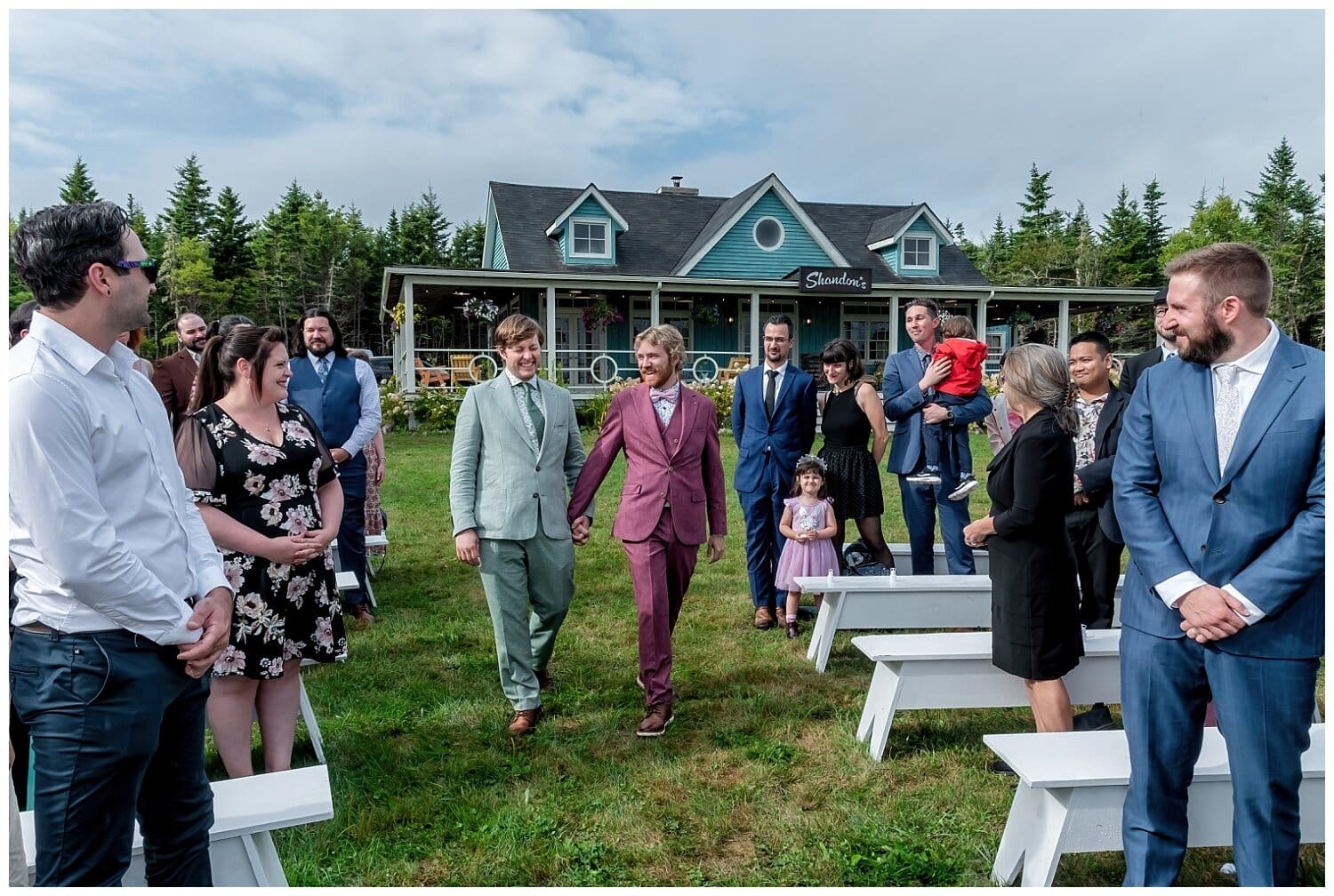 Planning a gay wedding that truly reflects who you are as a couple is something magical—and Keenan and Spencer’s celebration at Shandon’s Moonshine Cabin at Hubbards Campground and Cottages in Nova Scotia was nothing short of unforgettable. With ocean views, film-set charm, vibrant colours, and a ceremony overflowing with emotion, their two-groom wedding captured everything beautiful about love, authenticity, and joy.